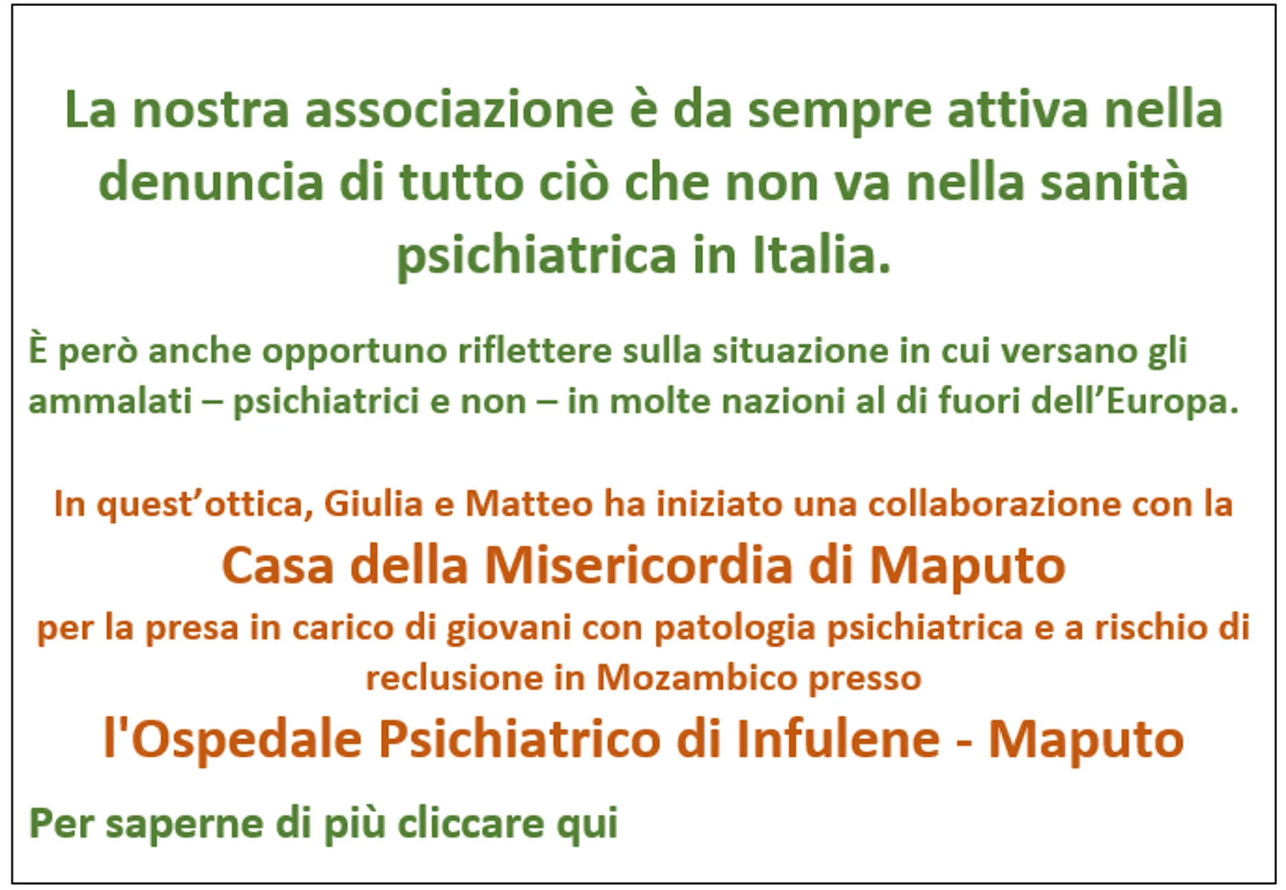 L’Associazione Giulia e Matteo è al fianco di familiari ed amici di persone con malattie psichiatriche o disturbi del comportamento. Offriamo supporto per l’orientamento nei percorsi di cura e per dare sostegno nei momenti più difficili.